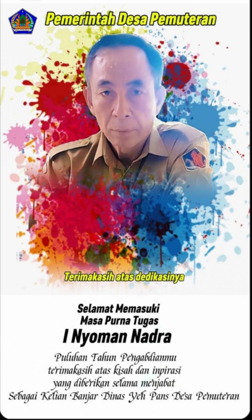 Dengan penuh rasa hormat, kami ucapkan selamat memasuki masa purna tugas. Perjalanan panjang Bapak dalam mengemban tugas dan tanggung jawab telah memberikan kontribusi besar bagi kemajuan Desa Pemuteran.